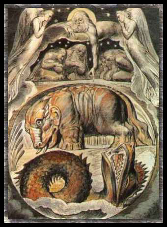 We finish up the book of Job today!  King Solomon’s book of Ecclesiastes begins tomorrow!  In our Job readings today, one very interesting thing that I really want to now study further is what exactly was the “behemoth” in Job Chapter 40 and what was the “leviathan” in Job Chapter 41? Were these dinosaurs?? I ask this very openly, in that I don’t know. Currently my thinking is lined up with the New Living Translation saying that the behemoth is a hippopotamus and that the leviathan is a crocodile – and obviously you can view my blog entry below to see I have images up of a hippo and croc. But. . . last year some of you posted up some good questions and points on the behemoth and leviathan’s being something else. . . perhaps even dinosaurs? I know we have some Biblical scholars and many pastors out there reading this. What say you? Please post up your thoughts on what the behemoth and leviathan are in the Comments section below. Thanks!  A few website links about the potential of dinosaurs being mentioned in the Bible are at this link, this link, and this link. Below is artwork titled “Behemoth and Leviathan” by William Blake from the year 1825: