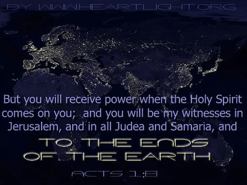 Please join us in memorizing and meditating on a verse of Scripture today: “But you will receive power when the Holy Spirit comes on you; and you will be my witnesses in Jerusalem, and in all Judea and Samaria, and to the ends of the earth.” Acts 1:8 NIV