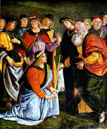“Be strong and courageous!” is the encouragement & exhortation we hear 3 times in chapter 31 today.  It was said by Moses to the Israelites in verse 6, then by Moses to Joshua in verse 7, and finally by God to Joshua in verse 23.  Why do you think this was said 3 times?  Why would the Israelites and Joshua need to be reminded to be strong and courageous?  And if these words were needed back then, do you think perhaps we might need to hear them still today?  Do we need to be reminded oftentimes to be strong and courageous?  Today, this side of the Cross, where does our strength and courage truly come from?  Below is Joshua being commissioned by Moses in a Fresco in the Sistine Chapel by Luigi Signorelli, circa 1481: