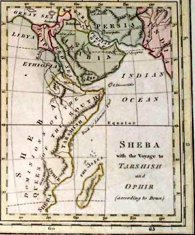 At the very end of Second Chronicles chapter 8 today we read these interesting verses 17-18: “Later Solomon went to Ezion-geber and Elath, ports in the land of Edom, along the shore of the Red Sea. Hiram sent him ships commanded by his own officers and manned by experienced crews of sailors. These ships sailed to the land of Ophir with Solomon’s men and brought back to Solomon almost seventeen tons of gold.” You will see the port of Elath in the 2nd map below. Then, the big question I had today was where is Ophir? Well, it turns out that Ophir was likely in the land of “Sheba” from whence Queen Sheba comes to visit Solomon! So, it is interesting to see how these last 2 verses in chapter 8 lead us to Second Chronicles chapter 9 today where we read about the Queen of Sheba’s visit to Solomon. Below is about the best map I could find with the land of Sheba, and Ophir, in comparison to Israel. The Queen obviously traveled quite a distance in those days to visit Solomon! And I think we can now understand how she learned of Solomon – he built a fleet of ships and sailed them to her land!