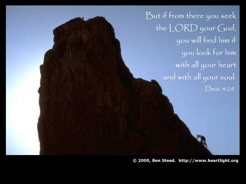 Today in Deuteronomy chapter 4 verse 29 we read: “But if from there you seek the LORD your God, you will find him if you look for him with all your heart and with all your soul.” How does this verse speak to you today? Do you believe it is true? Have you sought God with all of your heart and with all of your soul? This verse also reminds me of Jesus’ teaching of one of the two great commands – which he quoted from Deuteronomy chapter 6 verse 5 – “Love the LORD your God with all your heart and with all your soul and with all your strength.” So – if you have sought after God and found him, do you now today love God with all your heart and with all of your soul and with all your strength? What does this look like in your life? How do you love God in your life today?